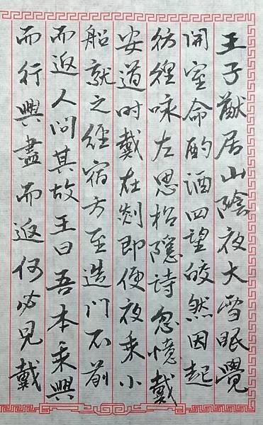 返家後照常寫功課,抄世說新語中〈王子猷夜訪戴安道〉,使用吳鳴老大贈我的古人寫小楷用的雀頭筆。